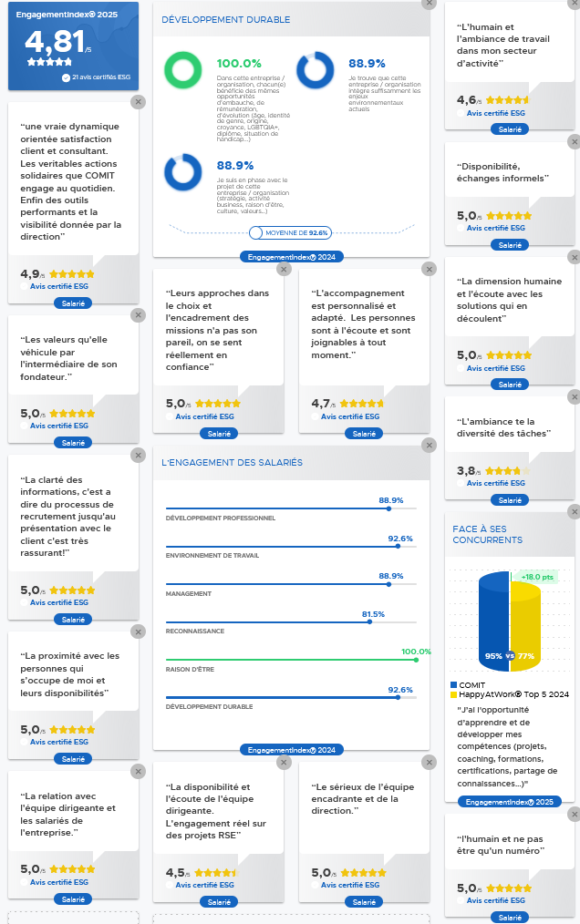 Fondée en 2022 sur les principes intangibles de l’intégrité, COMIT est l’entreprise de ses clients et de ses consultants. Chez COMIT, nous incarnons une culture où la transparence et l’éthique guident chaque décision.